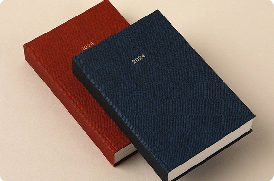 Printed cover case, or leatherette PU/ Linen cloth cover, mounted onto 2.5mm cover board.